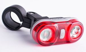 Фонарь задний CG-405R. Питание 2 х ААА; 3 режима работы; красный свет; 2 диода увеличенной мощности; быстросъемный крепеж.