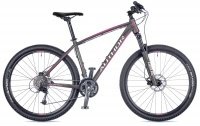 Женский горный велосипед с 27.5" колёсами и гидравлическими дисковыми тормозами от чешской фирмы Author. Снаряд спортивного уровня для гонок по грунту и бездорожью. Рама из лёгкого алюминия марки 6061 с гидроформингом, трансмиссия с чётким переключением и 30 скоростями, передняя звезда закрыта пластиковым кожухом и не пачкает одежду, вилка с воздушным картриджем настраивается под ездока и обеспечивает сцепление с дорогой.