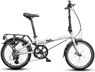 Dahon Mariner D8 20 – самый известный и продаваемый складной велосипед в мире. Свое название («Моряк») он получил благодаря повышенной устойчивости к коррозии, что изначально задумывалось для владельцев лодок и яхт, но в итоге сделало его идеальным «неубиваемым» байком для дождливого города. Рама выполнена из фирменного легкого сплава. Геометрия сочетает маневренность и стабильность. Главная фишка — антикоррозийная обработка всех узлов и специальное многослойное лакокрасочное покрытие. Трансмиссия на 8 скоростей с переключателем Shimano Altus. Это дает более четкое переключение и дополнительную передачу для высокой скорости на прямых участках.