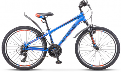 Подростковый горный велосипед с колёсами 24" и ободными тормозами от популярного российского бренда Stels. Прочная стальная рама не боится самых тяжелых испытаний на лесных и городских дорогах. Комфортная полуспортивная посадка и мягкая передняя вилка превратят в удовольствие поездку по неровной поверхности и преодоление небольших препятствий. Трансмиссия начального уровня с 18 скоростями позволит выбрать комфортный темп передвижения.