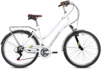Вы планируете ездить на своем байке по городу, но не хотите ограничиваться только лишь ровными парковыми дорожками? Городской женский велосипед Victoria 26 2021 от Stinger - модель, которая может удовлетворить вашим требованиям. Его стальная рама в тандеме с пружинной амо-вилкой хорошо гасит вибрации от мелких неровностей дороги, обеспечивая комфортность поездок. Удобная прямая посадка наилучшим образом подходит для прогулочного стиля езды, когда не нужно никуда спешить, а хочется любоваться видами, рассматривать витрины магазинов или весело болтать со своим велоспутником. Со Стингер Виктория 26 можно отправиться на пикник, зафиксировав поклажу весом до 25 кг на багажнике. Трансмиссия на 18 скоростей (3х6) поможет преодолеть любые подъемы.