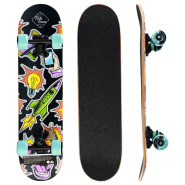 Размер этого детского скейтборда всего 61х15 см, что делает его пригодным для катания при росте до 100 см. Присутствуют такие атрибуты, как симметричный профиль деки сделанной из семи слоёв клёна, свесы хвостов, наждак и металлические траки. Стоит помнить, что это детский скейт. Для большей безопасности маленьких райдреров рельеф доски сглажен, свесы получили небольшую длину и очень слабый загиб, так же практически отсутствует конкейв. Колёса сделаны максимально мягкими, для более уверенного и надёжного сцепления – 78А. Алюминиевая подвеска пропорционального деке размера в 3.5" из ALU 6061-Т6 с податливыми PU бушингами жесткоcтью 80A и на подшипниках ABEC-5. Все эти параметры подобраны таким образом, что бы освоение простейших, начальных трюков было как можно более комфортным и безопасным.