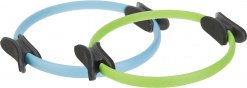 Кольцо для пилатеса изготовлено из эластичного материала, обшито мягким прорезиненным материалом, который снижает скольжение. А для того чтобы захватывать кольцо было удобнее, оно снабжено двойными ручками-накладками. Главное преимущество –  компактность. Оно занимает крайне мало места, позволяя хранить его дома, брать в поездки или в фитнес-клуб. Стоит кольцо недорого, зато позволяет существенно разнообразить тренировки, сделать их более интересными и интенсивными. Рработает как на сжатие, так и на растяжение, его можно использовать в качество точки опоры, упирая в стену или в пол. Чаще всего кольцо зажимают в руках, но возможны и другие варианты: между лодыжек, коленей, локтей. С помощью кольца для пилатеса тренировки можно сделать более продуктивными, повышая нагрузку на мышцы. Причем кольцо позволяет целенаправленно прорабатывать проблемные зоны: внутреннюю и внешнюю поверхность бедра, ягодицы, лодыжки, руки, мышцы груди и спины.